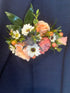 A step above the rest! This boutonniere is designed to slip into the pocket of your jacket.  Constructed with assorted blooms, fillers, and greens this boutonniere is a showstopper!